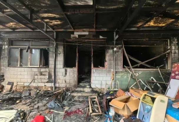 红光村一平房客厅起火